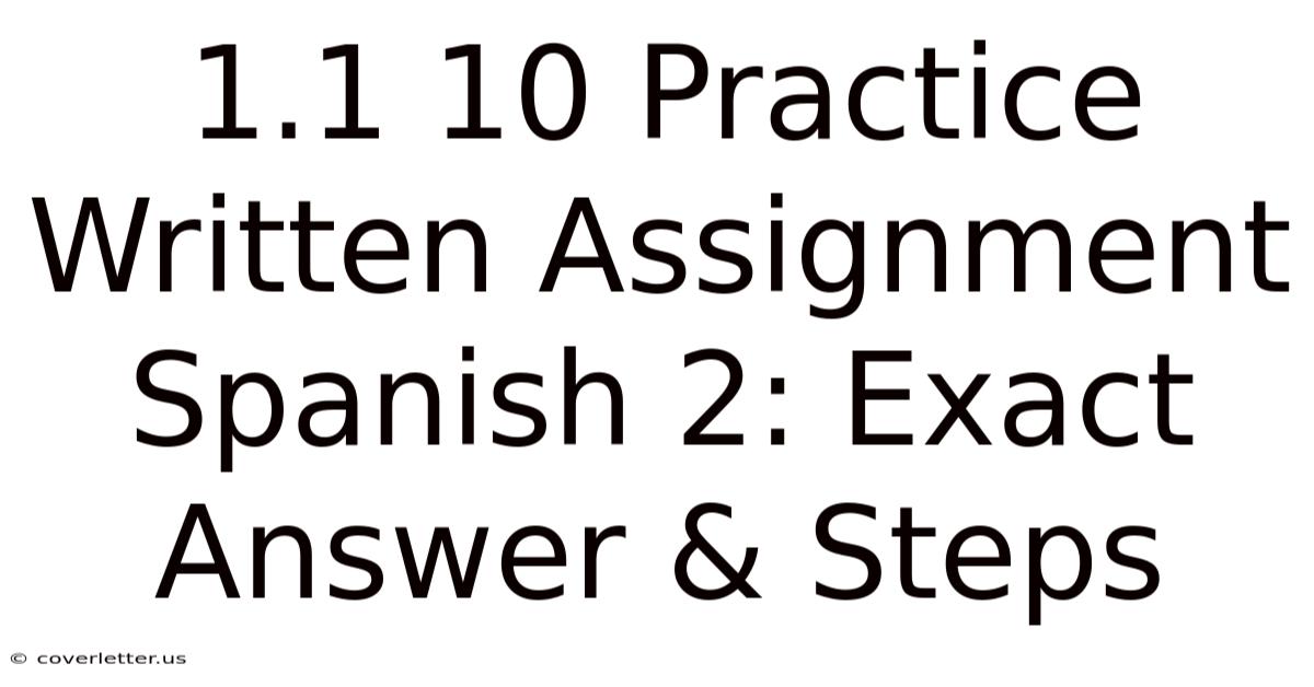In most Spanish 2 courses, a 1.1" usually refers to the lesson or section number, and "10" might indicate it's the tenth practice or a specific point value. So 1 10 practice written assignment is a structured writing task designed to reinforce what you've learned in the first unit or module. The "1.These assignments typically combine vocabulary from recent lessons with grammar concepts like present tense verbs, adjective agreement, and basic sentence structure Not complicated — just consistent..