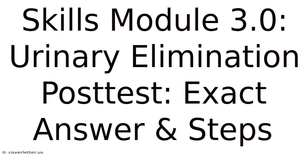 I used to think I knew what it meant to help someone pee. Sounds simple, right? On the flip side, you get them to a toilet or a bedpan, privacy is closed, dignity stays intact, and you move on. But after years in care settings—watching, doing, relearning—I found out how much I was missing. Day to day, that’s why skills module 3. 0 urinary elimination posttest material sticks with people. It isn’t just about passing a quiz. It’s about seeing the whole picture of how bodies let go, what gets in the way, and how small choices change outcomes fast Worth knowing..