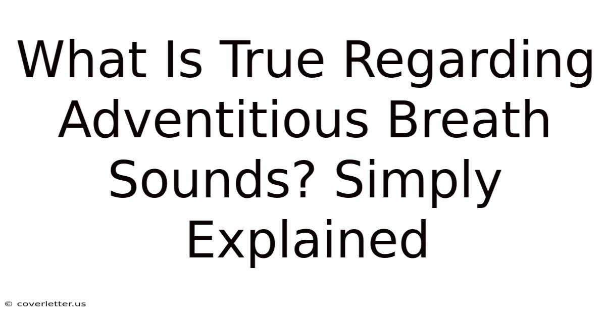 Adventitious breath sounds are more than just odd noises; they can be a window into your respiratory health. On top of that, by understanding what these sounds are and why they matter, you can take proactive steps to monitor your health and seek professional help when needed. Remember, knowledge is power, and being informed about your own body is a crucial step in maintaining your well-being But it adds up..